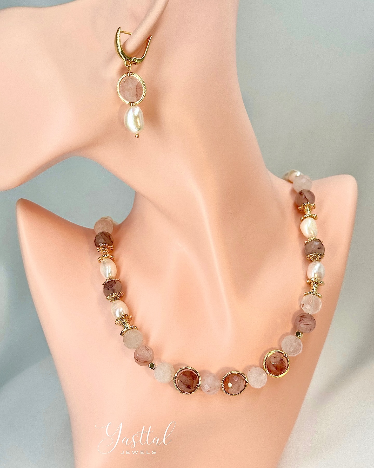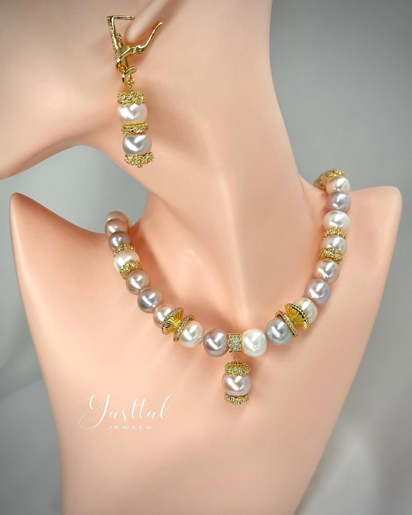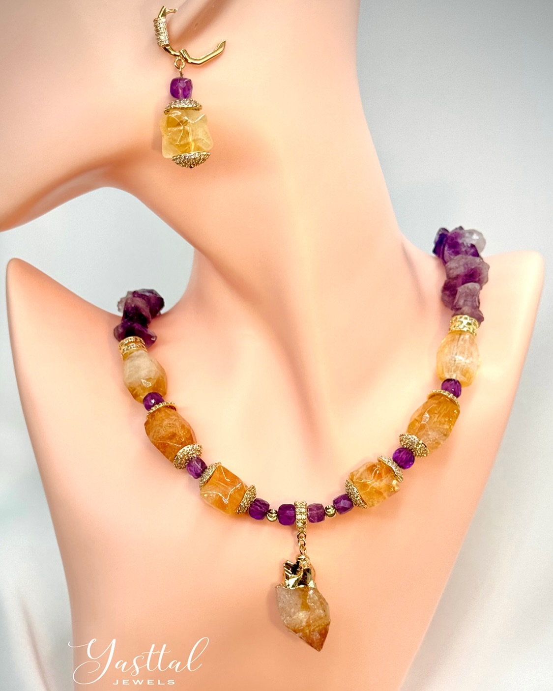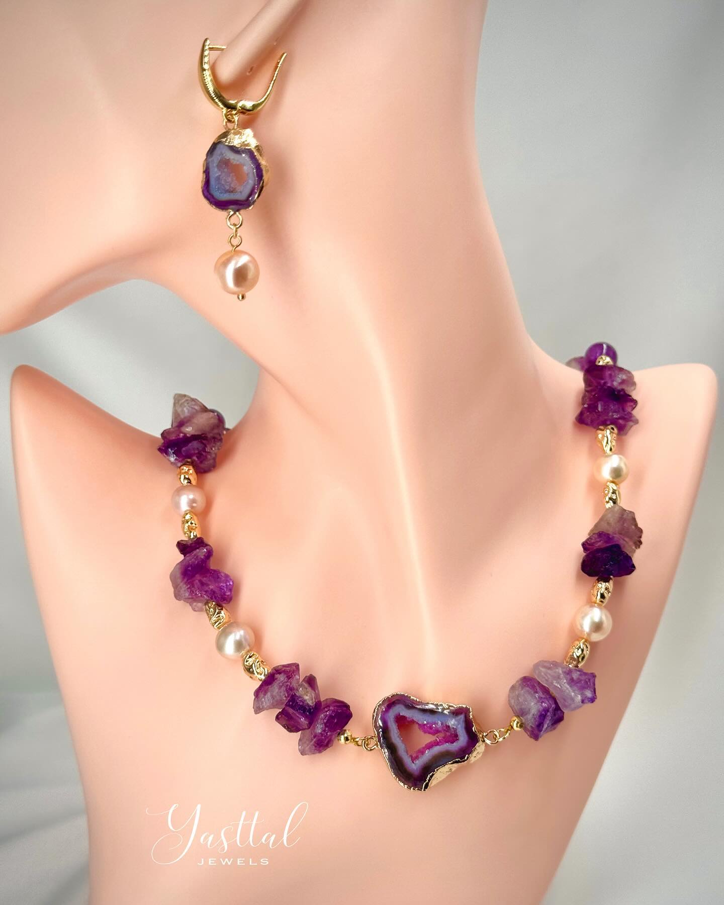 Made of Natural Amethyst stones and Freshwater Pearls.
